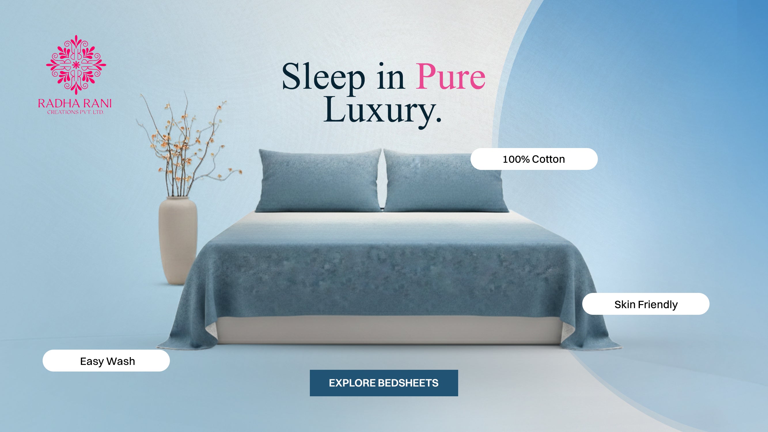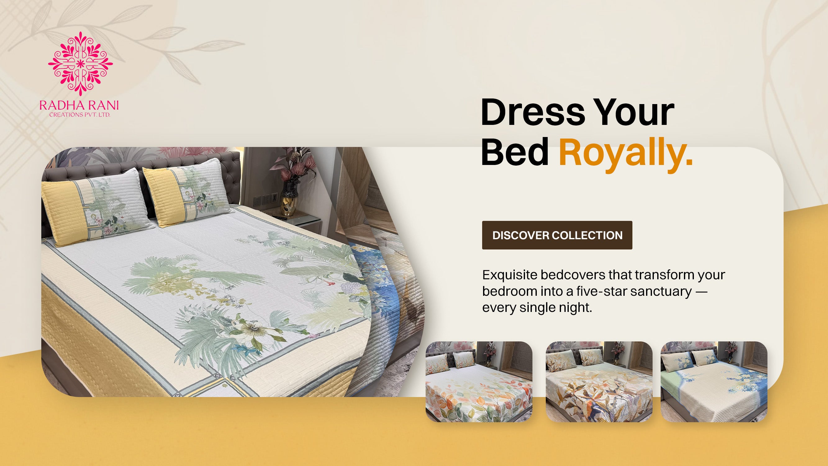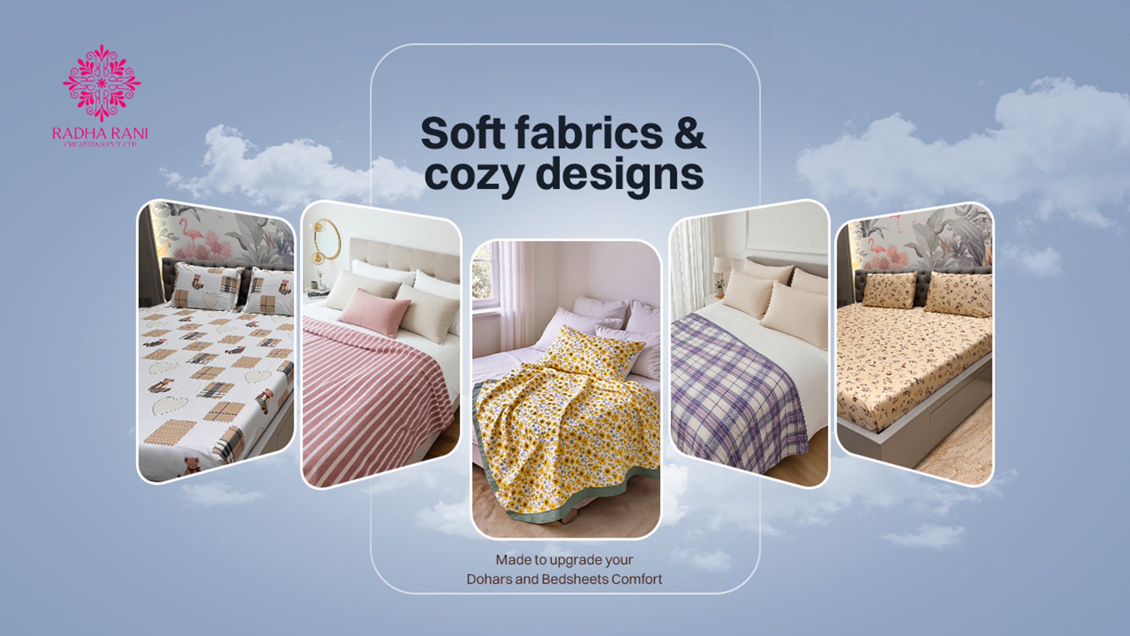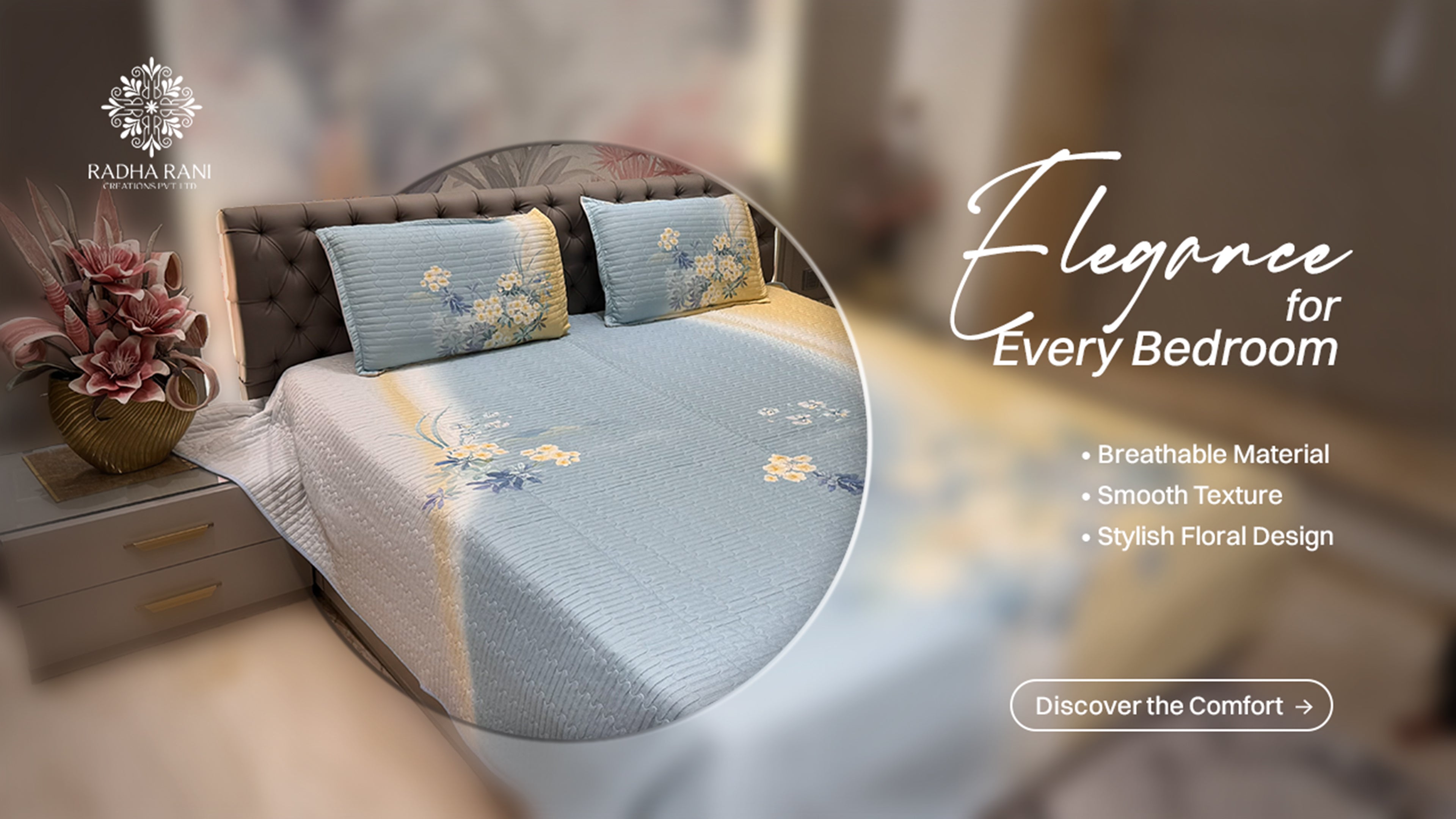 Bring home the comfort and richness of Radha Rani's premium craftsmanship, luxurious prints, and 100% hand finished cotton bedsheets & premium bedcovers
