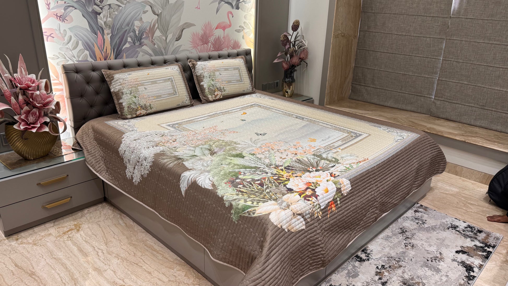 Beautiful Floral Frame Digital Bedcover
