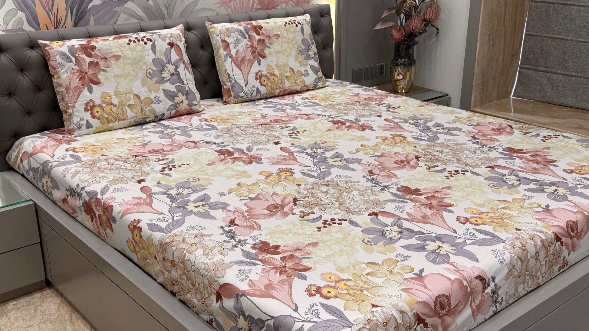 Imported Pure Cotton Satin Floral Print Multi Colour Bedsheet