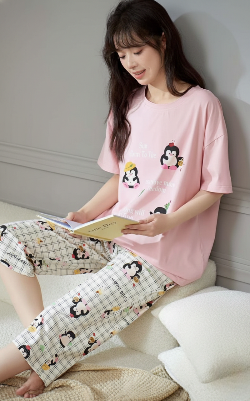 Featuring trendy multicolor prints, short sleeves, and a short-length design, this nightwear set offers a perfect balance of comfort and modern style. With superior stitching and a comfortable fit, it’s ideal for lounging or sleeping.